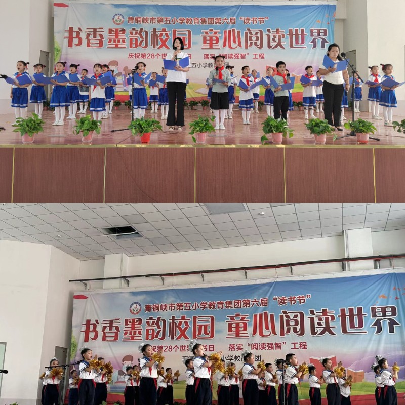 伴随着全体师生齐唱《中华人民共和国国歌》,拉开了二年级组读书成果展示展演的序幕。青铜峡市第五小学副校长李思国同志主持活动,对我校本次读书节二年级组读书成果展示展演活动表示衷心的祝贺。教师代表苏瑞瑞以及家长代表楚秀起的激情演讲拉近了学校、家庭、社会共同阅读的距离,在孩子们幼小的心灵播种下阅读的种子。