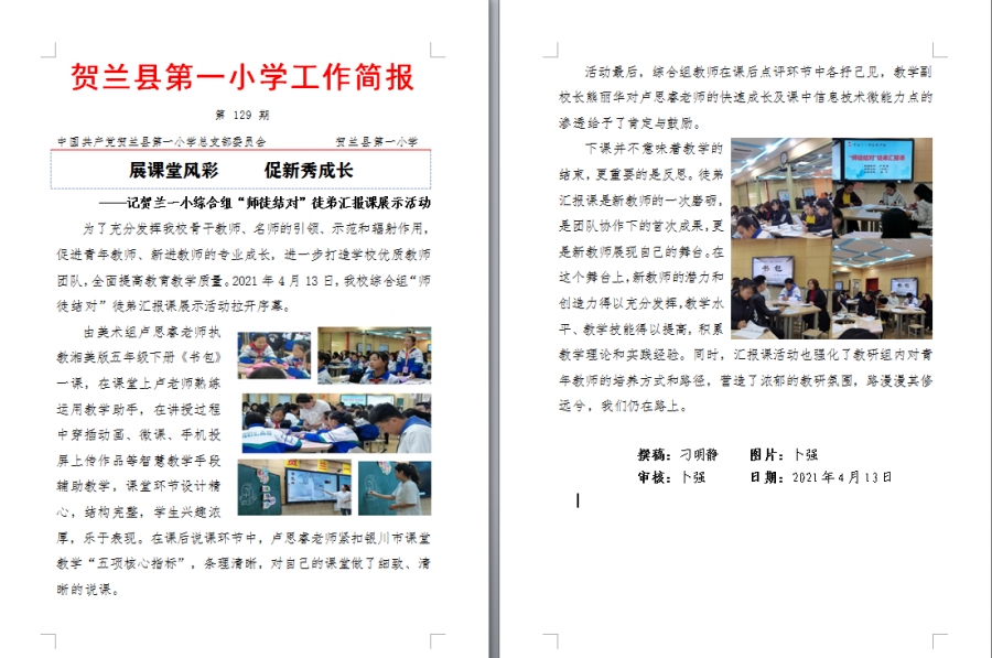 记贺兰一小综合组师徒结对徒弟汇报课活动