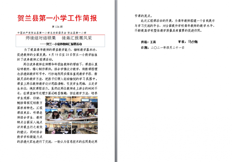 贺兰一小徒弟教师汇报课活动