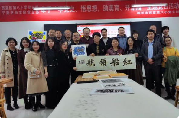 今年是建党100周年,3月17日下午,银川市西夏区第八小学联合宁夏书画院共同举办“学党史,悟思想,送书法,助美育”——“感悟红船精神 坚定使命担当”主题党日活动。