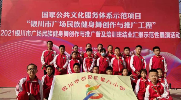 4月16日下午,学校跳绳队学生在体育老师杨利娟、邓瑞的带领下,参加了“银川市2021年广场舞创作与推广普及培训班结业汇报示范性展演”活动。在此次活动中,西夏八小跳绳队进行了精彩的展示,赢得了与会嘉宾与现场观众的热烈掌声与好评。