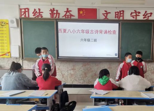 四月读书月,西夏区第八小学全体师生“与经典同行 与书香为伴”。在今年的“读书节”活动中,我校进行了丰富多彩的诵读经典的活动,其中,对111首必背古诗的背诵是师生诵读的一项