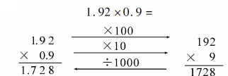 由此,我们算出所需油漆量为:1.92×0.9=1.728(千克) 答:给这个长方形宣传栏涂油漆,一共需要1.728千克油漆。 4.总结小数乘法的计算方法。 讨论:2.4×0.8和1.92×0.9是怎样计算的? 引导学生得出:先把被乘数和乘数乘以10或乘以100变成整数后,积就相当于乘以100或乘以1000,要求原来的积,就应把乘出来的积再除以100或除以1000。 讨论观察一下,例3中因数与积的小数位数,你能发现什么?(因数的位数和等于积的小数位数。) 小结:因数的小数位数相加的和等于积的小数位数。 想一想:5.02×0.87的积中有几位小数?0.052×0.82呢? 【设计意图】在给宣传栏刷油漆的问题背景下,迁移已有的小数乘整数的经验,为学生进一步探究小数乘小数的计算方法奠定坚实的基础。 三、全课总结 (1)今天我们学习了什么?有什么收获呢? (2)小数乘小数与小数乘整数有什么区别? 小结:(1)今天,我们学习了小数乘小数的计算方法。应用小数乘小数的计算方法:先把每个因数扩大10倍、100倍……变成整数后再相乘,再数出因数的小数位数和,积中就有几位小数。 (2)小数乘小数的乘法中,积的小数位数等于两个因数小数位数之和,小数乘整数的乘法中积的小数位数与第一个因数的小数位数相同。 |