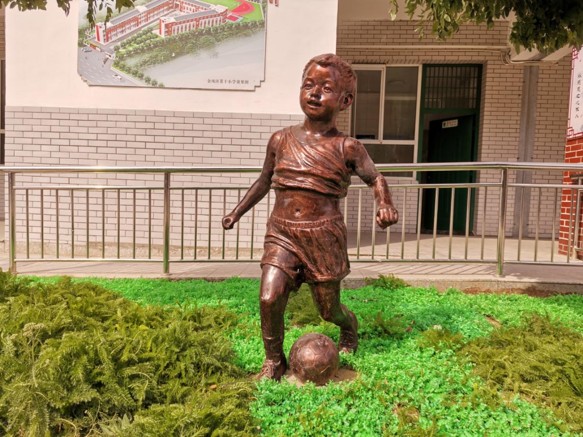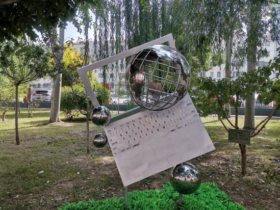 “时代之光”主题雕塑突出了学校信息化示范校的特色。