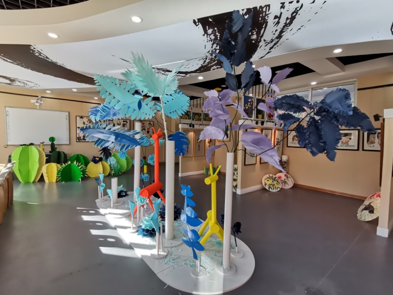 彩墨宣纸三门特色校本课展开。以卡纸、废旧报纸、手揉纸、宣纸等材料,通过揉、卷、剪、粘、刻等手法。充分体现了学生在美术学习中的主体性、创造性与趣味性。展现了学校美育的开放性与立体性。