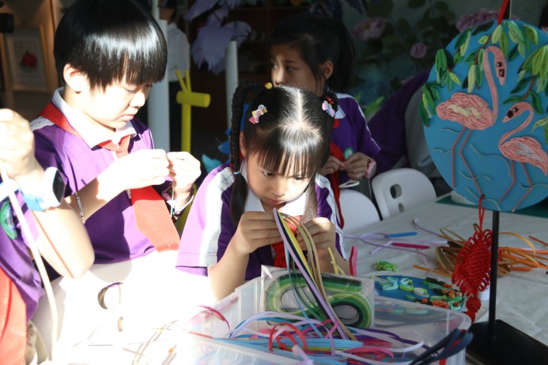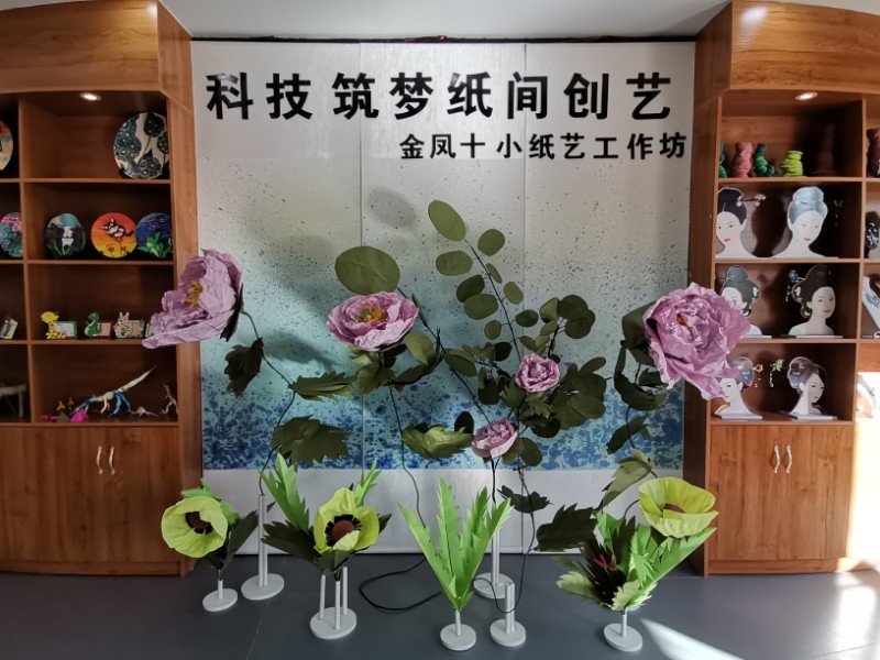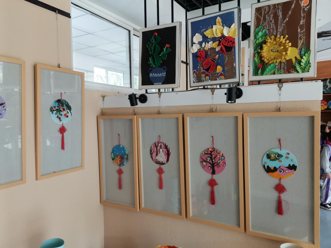 其次是室内纸艺工作坊。工作坊围绕我校魅力衍纸、工艺折纸、