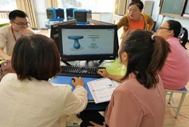这又是遇到了什么难题了呢?原来3D打印课来了,可是怎样才能设计并打印出一个物体呢,这可难不倒爱学的老师们,瞧她们通过一个一个的圆竟然组合成了一个印章呢!