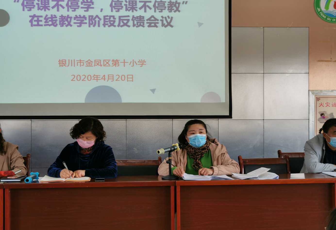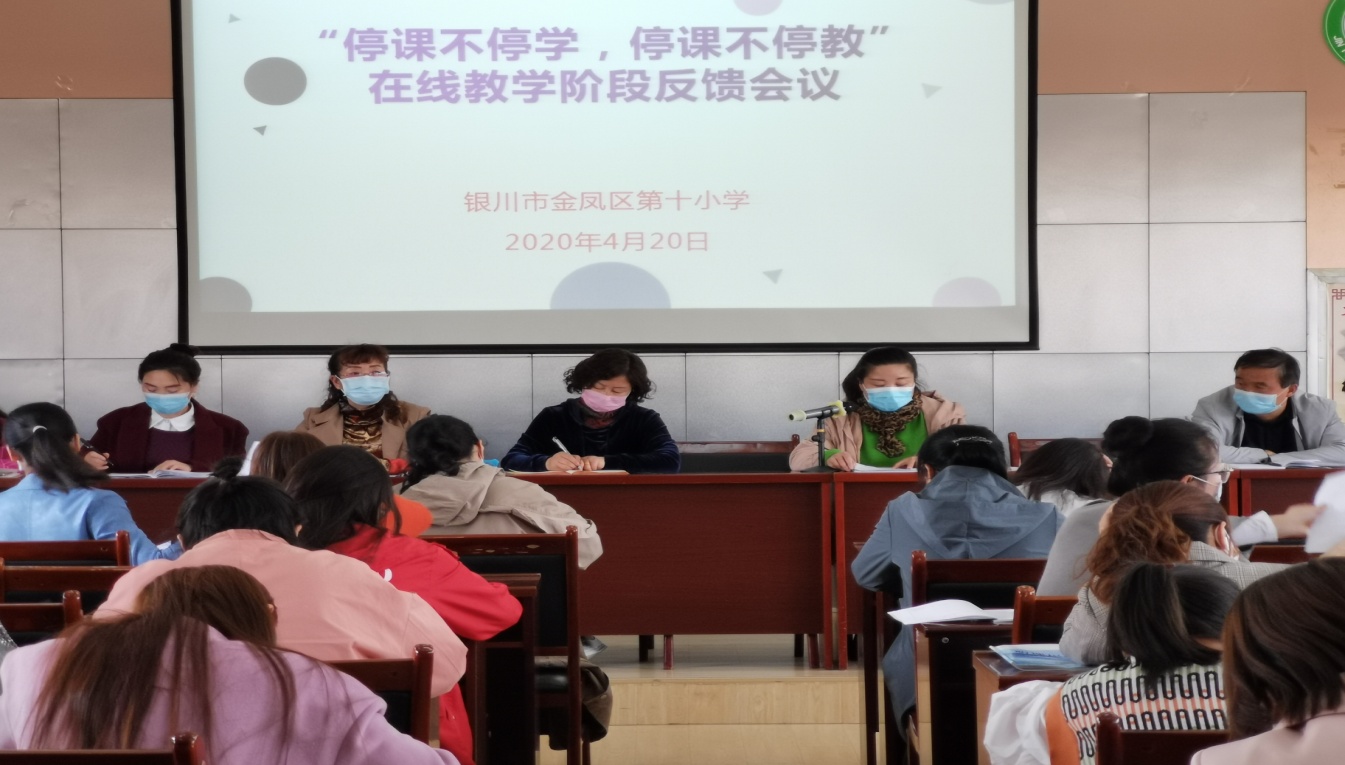 2020年一场突如其来的疫情打乱了全体中国人民的鼠年春节,在延迟开学的情况下,金凤区第十小学按照上级有关要求精心组织学生停课不停学、教师离校不离教活动。为了总结前段时间线上教学的成果和经验,对全体教师提出进一步的工作要求,2020年4月21日我校召开了“空中课堂、在线课堂”阶段性工作会议,全体教师参加了会议。