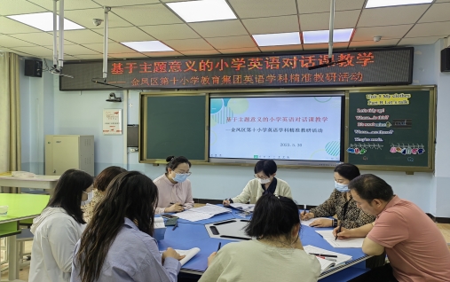 教而不研则浅,研而不教则空。在这生机盎然的初夏,为了深入贯彻落实新课程标准精神,推进以核心素养为导向的课堂教学改革,助力“双减”政策落实,促进教师专业素养不断提升。2023年5月30日,金凤十小教育集团开展了“基于主题意义的小学英语对话课教学”为主题的精准教研活动,特邀金凤区英语教研员李莫莹老师莅临我校指导英语学科精准教研活动,参加此次活动的还有金凤区36小李素华校长及金凤区第十小学马少明主任和金凤十小教育集团全体英语教师。