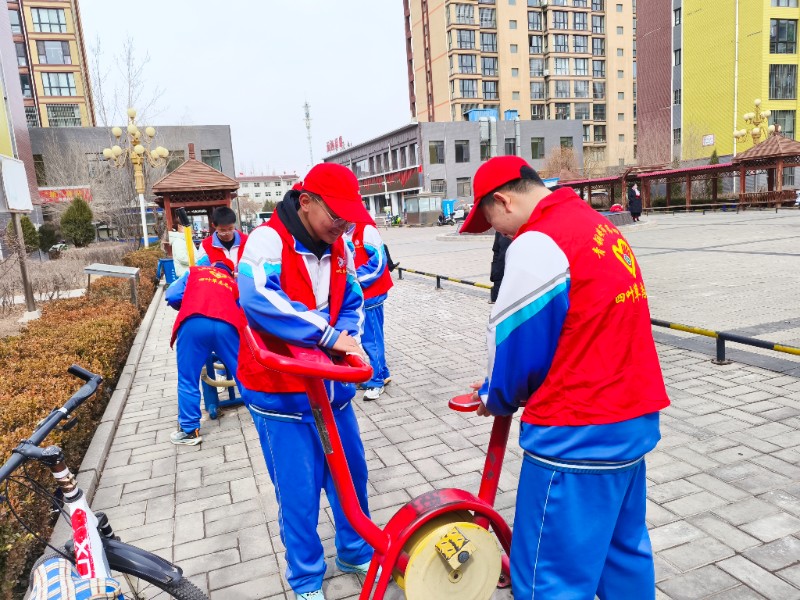 3月5日下午,学校团委书记苏双东,带领部分九年级学生,深入社区,做好铸牢中华民族共同体意识“学雷锋纪念日”社会实践活动,小志愿者们向社区居民发放“防诈”宣传手册,讲解防诈知识;深入花园、草丛捡拾垃圾;擦拭健身器材等力所能及的事,把雷锋精神落到实处,以自己的实际行动向雷锋同志学习,践行社会主义核心价值观。