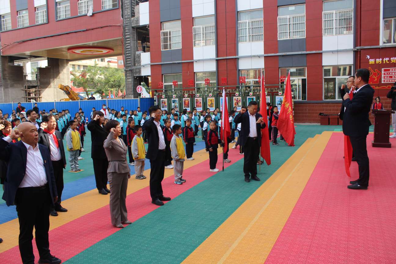 2023年10月13日,是中国少年先锋队建队74周年纪念日,为进一步习贯彻党的二十大精神,加强少先队员思想建设,教育少先队员弘扬少年先锋队的光荣传统。13日下午14:30,市三小即将入队的97名儿童来到汉坝小学,与汉坝小学、市五小、市六小、甘城子中心小学共同举行了意义非凡的入队仪式。