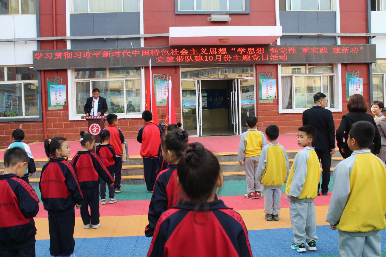 本次活动由汉坝小学党支部书记、校长伏鹏主持,以党建带队建,学习贯彻习近平时代中国特色社会主义思想,让少先队员们时刻牢记“我们是共产主义接班人”。
