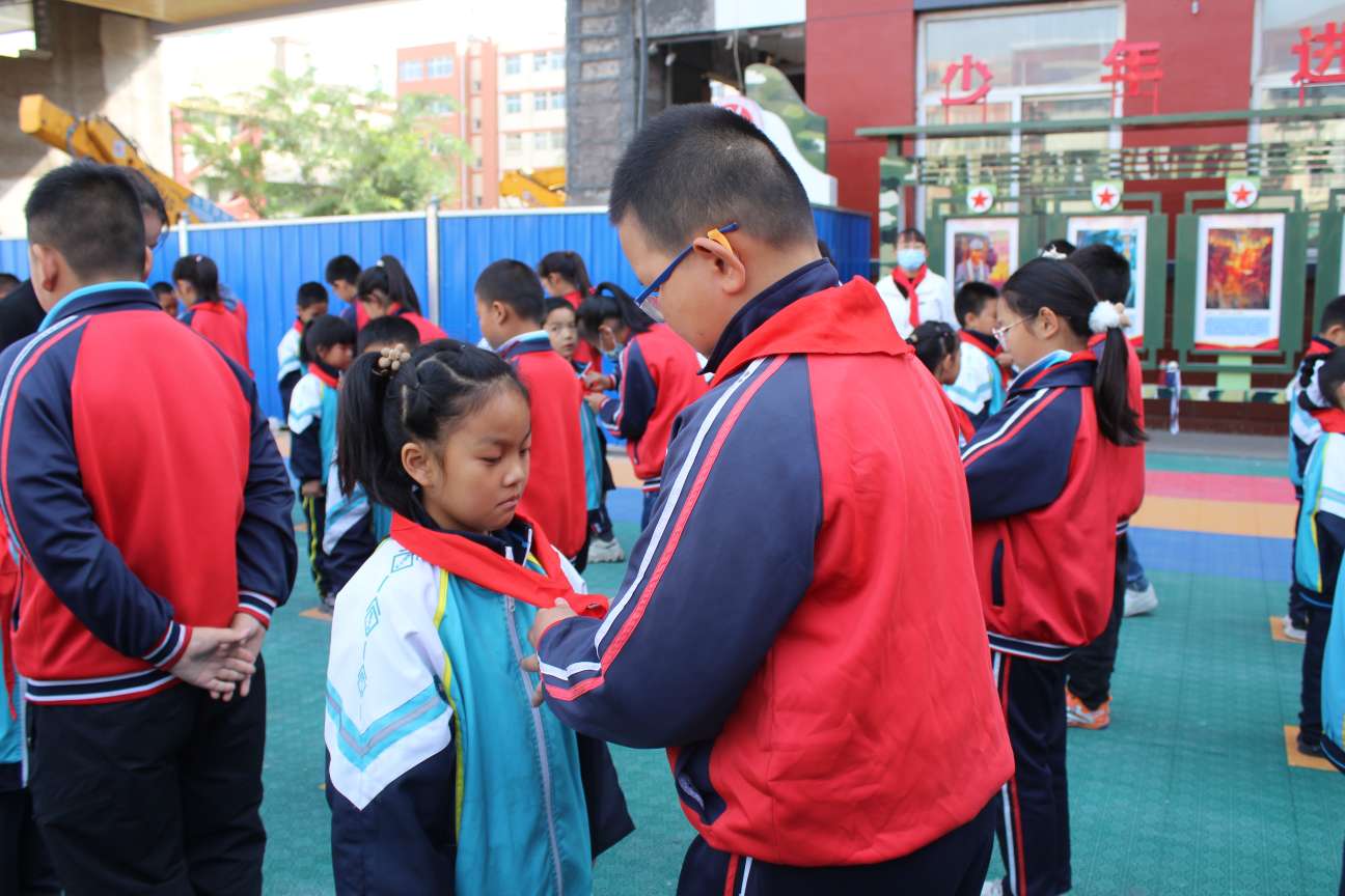 老队员为新队员戴红领巾