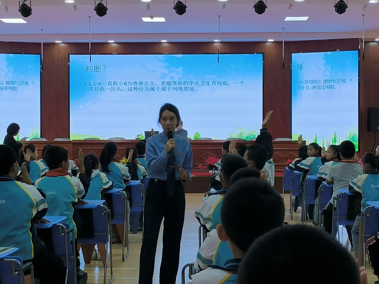 讲座中,蒋培林检察员通过分析案例、现场问答等方式,深入浅出地讲解了什么是校园欺凌,如何运离校园欺凌,遭遇校园欺凌怎么办等知识,通过一个个触目惊心的案例,使同学们深刻认识到“校园欺凌”给受害人自身、给社会、给家庭带来的影响和痛苦,引导同学们坚决不当施暴者、避免成为受害者、学会做个保护者。