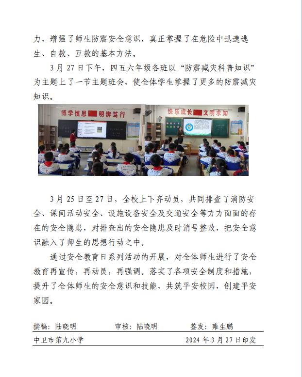 发布时间:2024-03-27 17:03 栏目:学校资讯 发布单位:中卫市第九小学 点击量:2840 【公开】