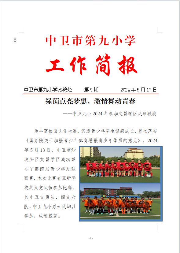 发布时间:2024-05-17 18:37 栏目:学校资讯 发布单位:中卫市第九小学 点击量:1456 【公开】