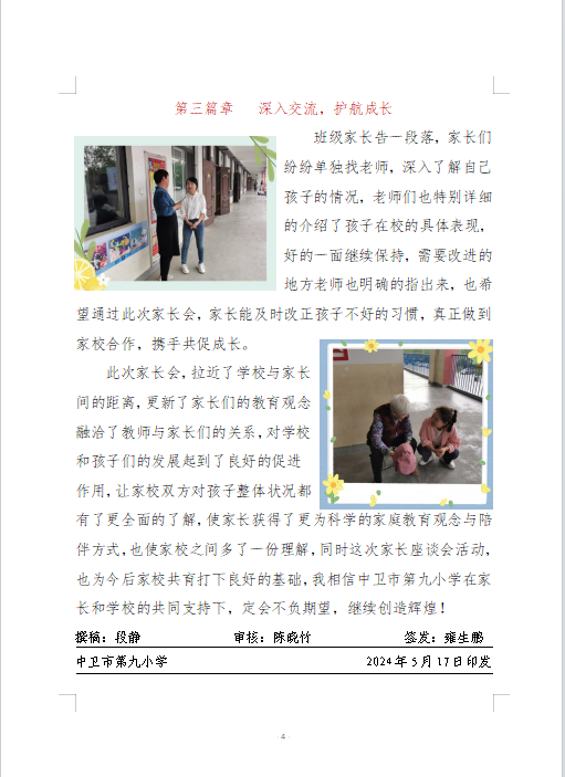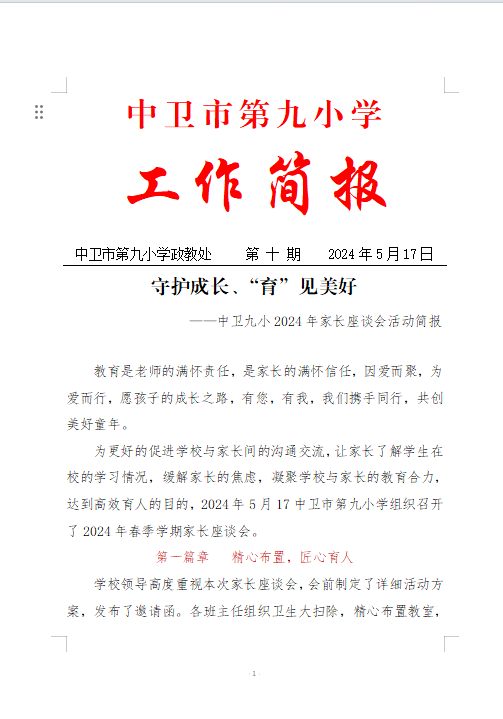 发布时间:2024-05-21 09:33 栏目:学校资讯 发布单位:中卫市第九小学 点击量:1246 【公开】