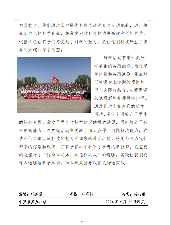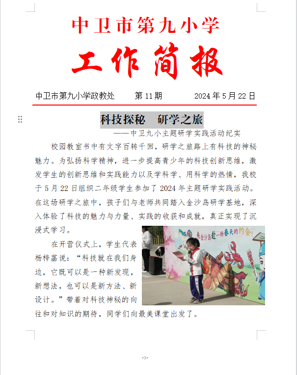 发布时间:2024-05-23 09:49 栏目:学校资讯 发布单位:中卫市第九小学 点击量:2551 【公开】