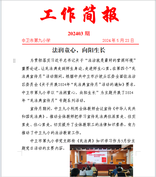 发布时间:2024-05-23 11:01 栏目:学校资讯 发布单位:中卫市第九小学 点击量:1509 【公开】