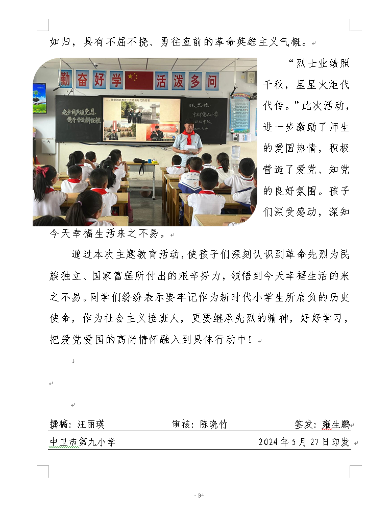 发布时间:2024-05-28 09:55 栏目:学校资讯 发布单位:中卫市第九小学 点击量:2893 【公开】