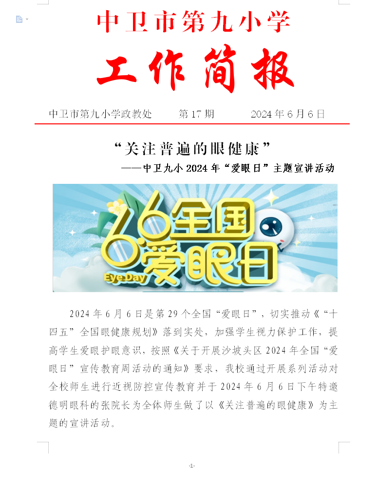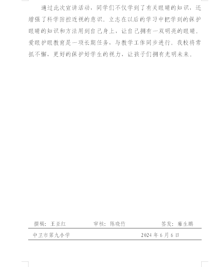 发布时间:2024-06-06 17:44 栏目:学校资讯 发布单位:中卫市第九小学 点击量:2696 【公开】
