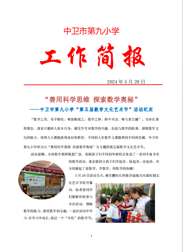 发布时间:2024-06-12 16:33 栏目:学校资讯 发布单位:中卫市第九小学 点击量:3203 【公开】