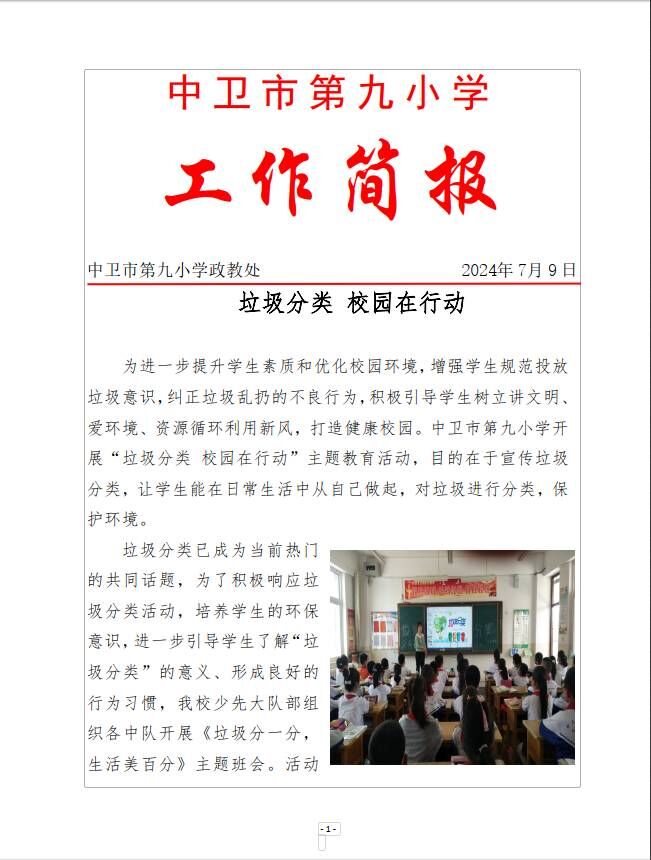 中卫九小2024年垃圾分类工作简报