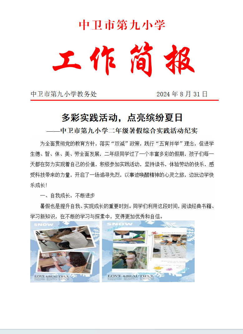 发布时间:2024-09-03 16:02 栏目:学校资讯 发布单位:中卫市第九小学 点击量:3338 【公开】