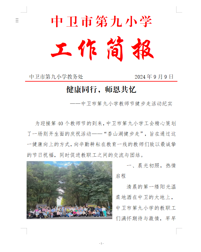 中卫市第九小学教师节健步走活动纪实