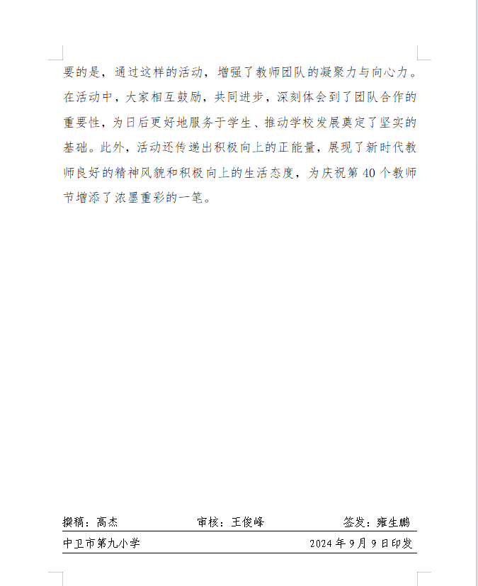 发布时间:2024-09-09 08:30 栏目:学校资讯 发布单位:中卫市第九小学 点击量:1511 【公开】