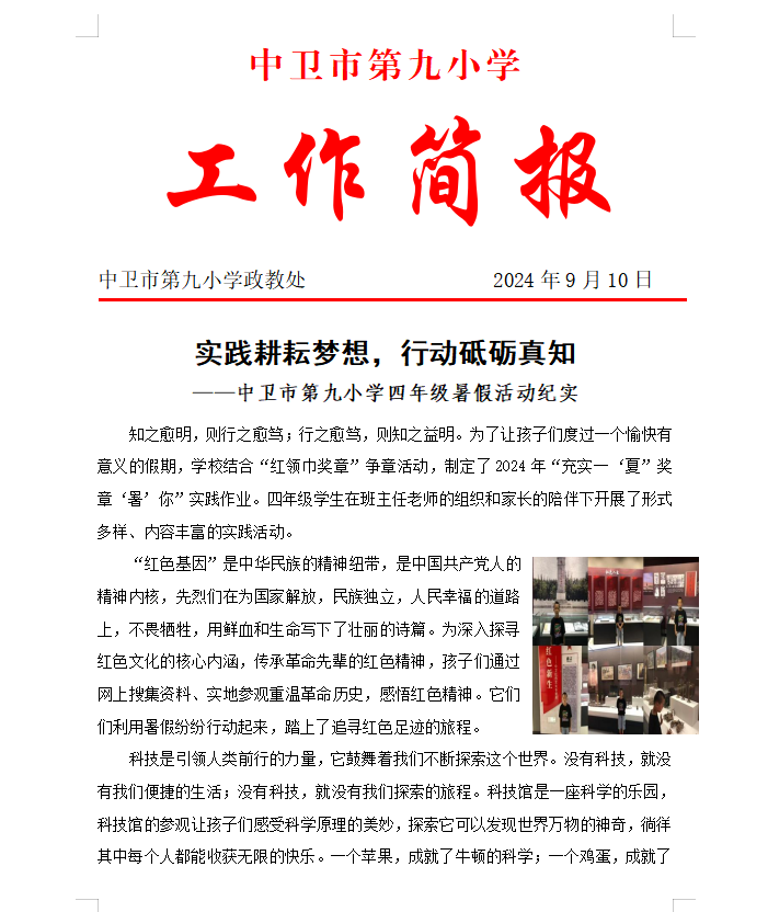 发布时间:2024-09-10 15:07 栏目:学校资讯 发布单位:中卫市第九小学 点击量:1548 【公开】