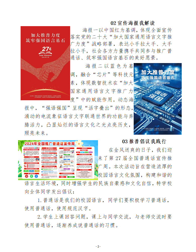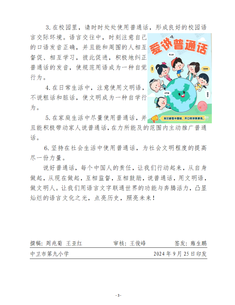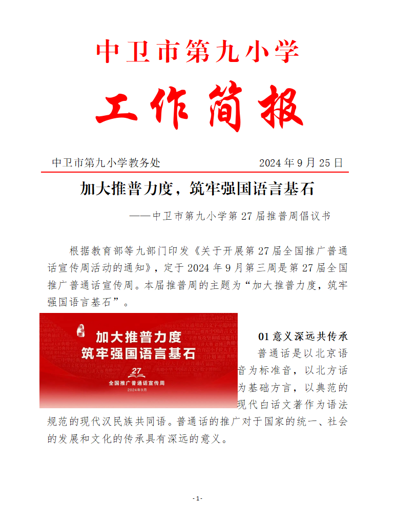 加大推普力度 筑牢强国语言基石——中卫市第九小学第27届推普周倡议书简报