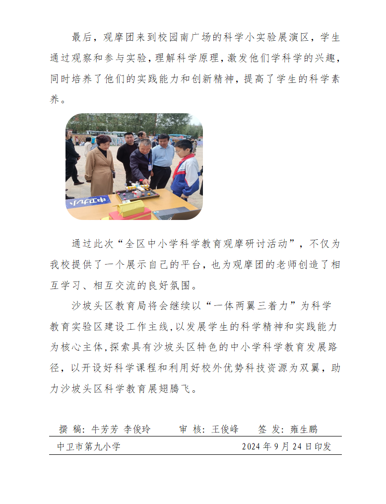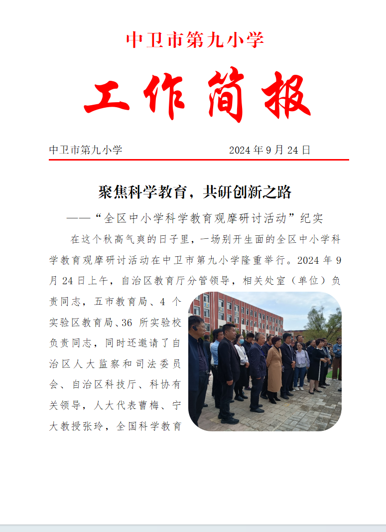发布时间:2024-09-26 08:33 栏目:学校资讯 发布单位:中卫市第九小学 点击量:2208 【公开】
