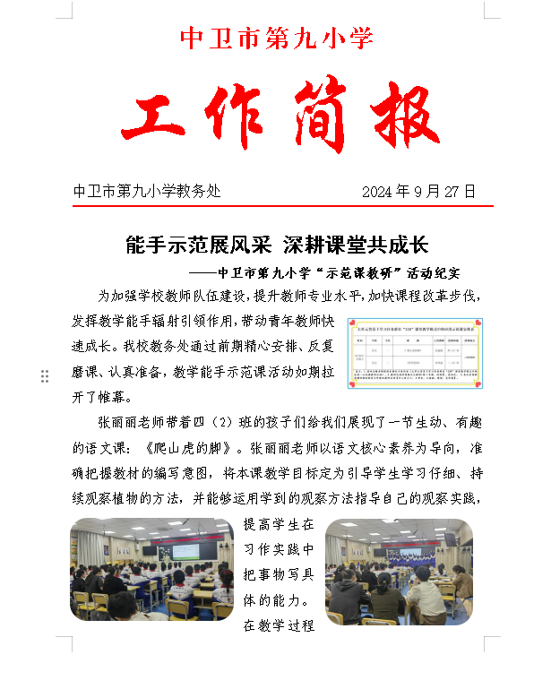 中卫市第九小学“示范课教研”活动纪实