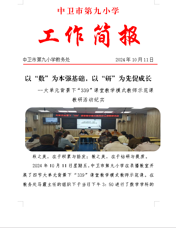 发布时间:2024-10-11 16:43 栏目:学校资讯 发布单位:中卫市第九小学 点击量:914 【公开】