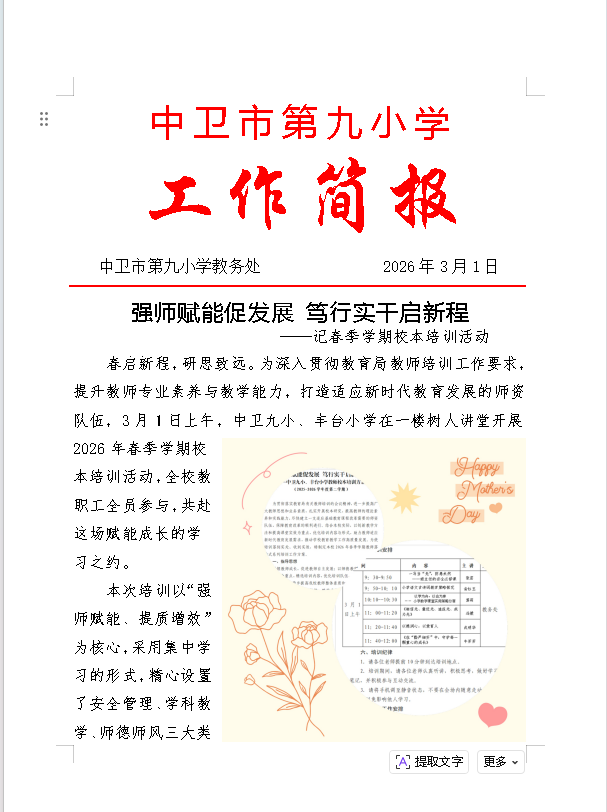 发布时间:2026-03-02 09:39 栏目:学校资讯 发布单位:中卫市第九小学 点击量:288 【公开】
