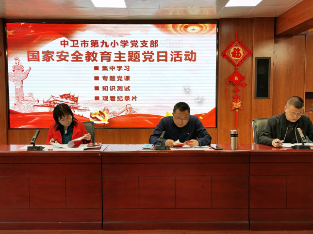 为深入学习贯彻习近平总书记关于总体国家安全观的重要论述,进一步营造学习宣传国家安全法律知识、共同维护国家安全的浓厚氛围,增强党员教师的国家安全意识,4月24日,中卫九小党支部开展了以“坚持总体国家安全观,统筹传统安全和非传统安全,为决胜全面建成小康社会提供坚强保障。”为主题的主题党日活动。