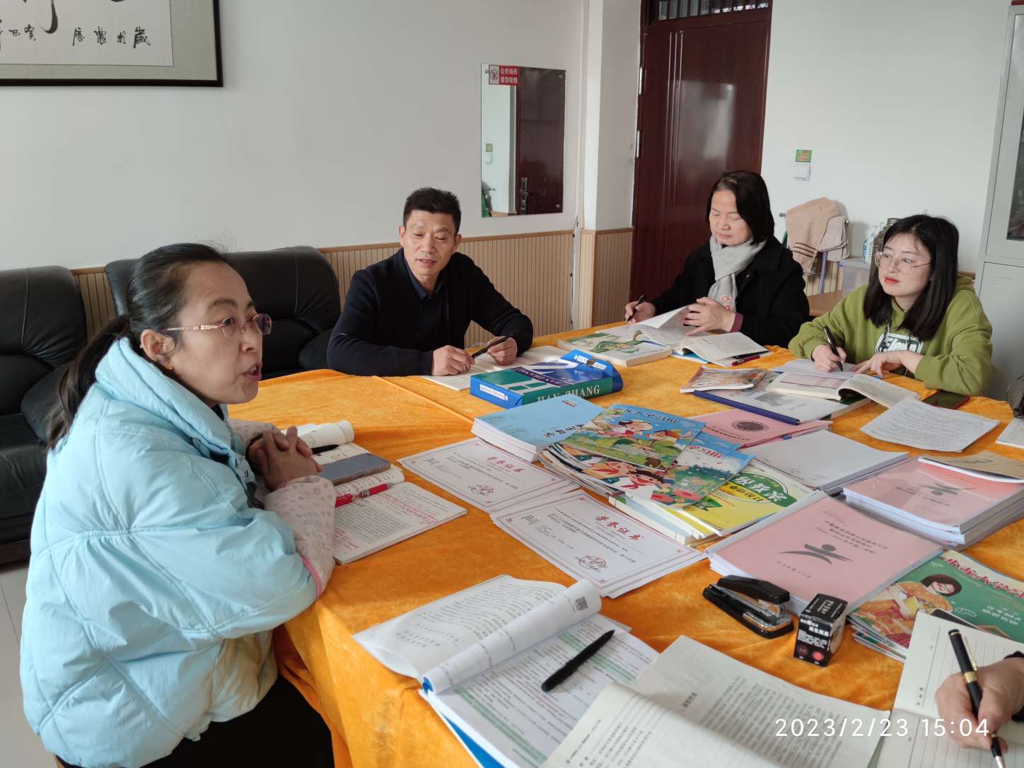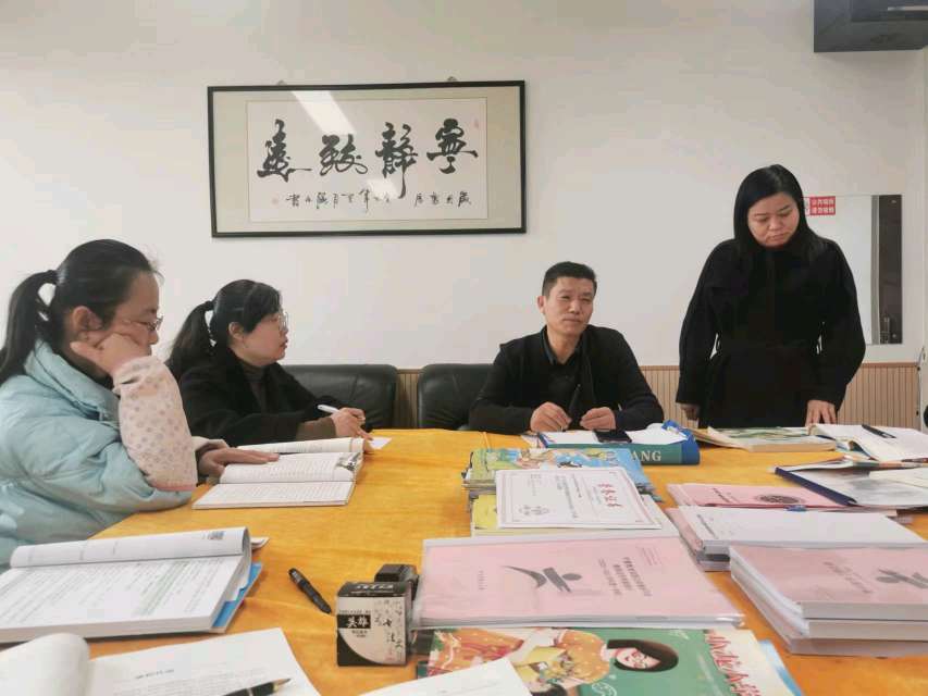 首先,我们组的张永慧老师从单元主题及内容、单元要素及教学要点、单元教学目标及重难点等方面向全组老师进行了解读,接着,其他老师也分别进行了交流。在交流过程中,老师们精心准备,对课标精神准确把握,对教材知识强化整合,材料充分,资料详实。