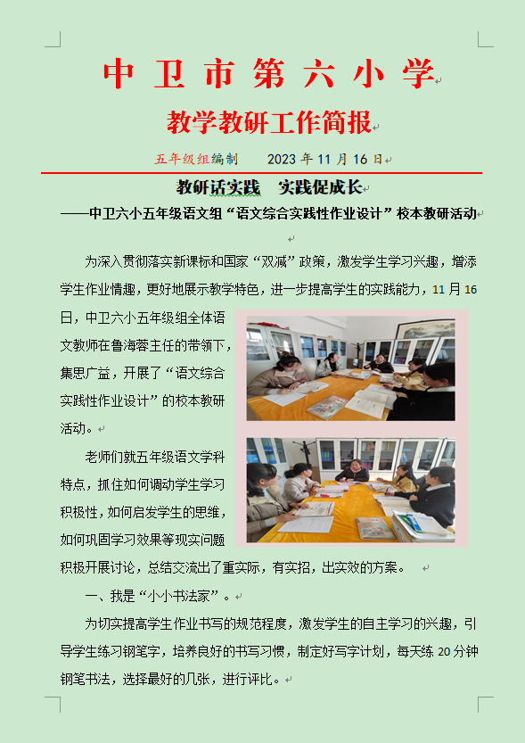 【中卫六小.教研】教研话实践实践促成长