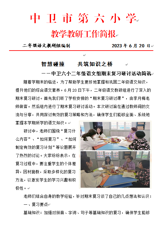 【中卫六小·教研】智慧碰撞 共筑知识之桥 ——中卫六小二年级语文组期末复习研讨活动简讯