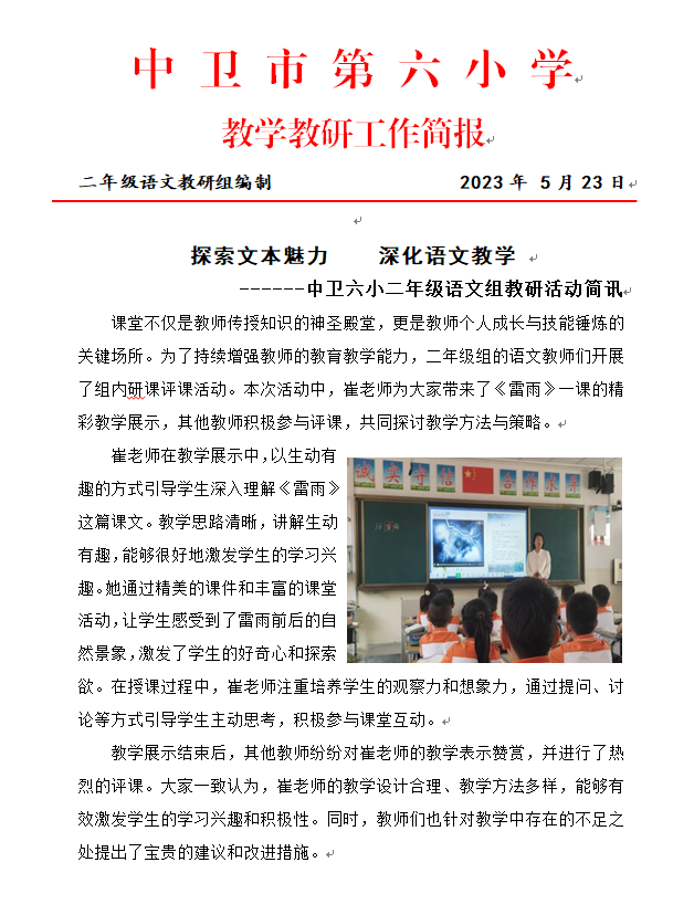 【中卫六小·教研】探索文本魅力 深化语文教学 ——中卫六小二年级语文组教研活动简讯