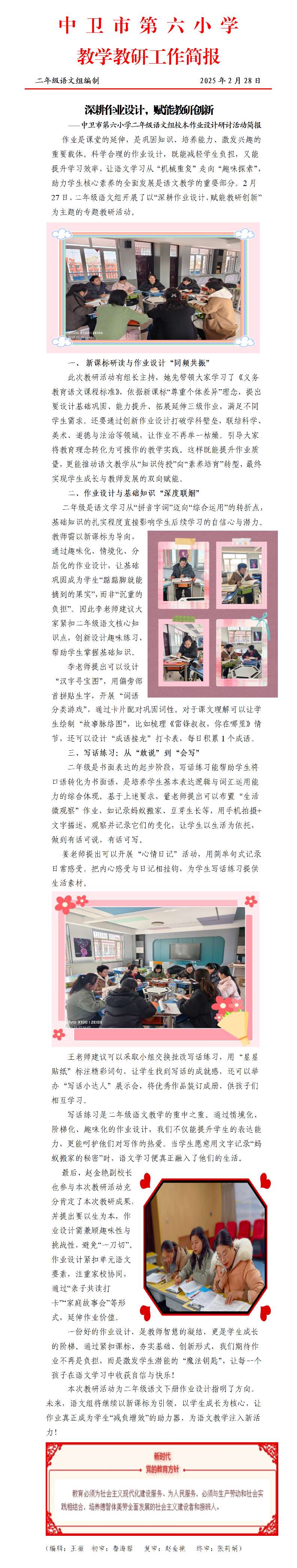 深耕作业设计,赋能教研创新——中卫市第六小学二年级语文组校本作业设计研讨活动简报