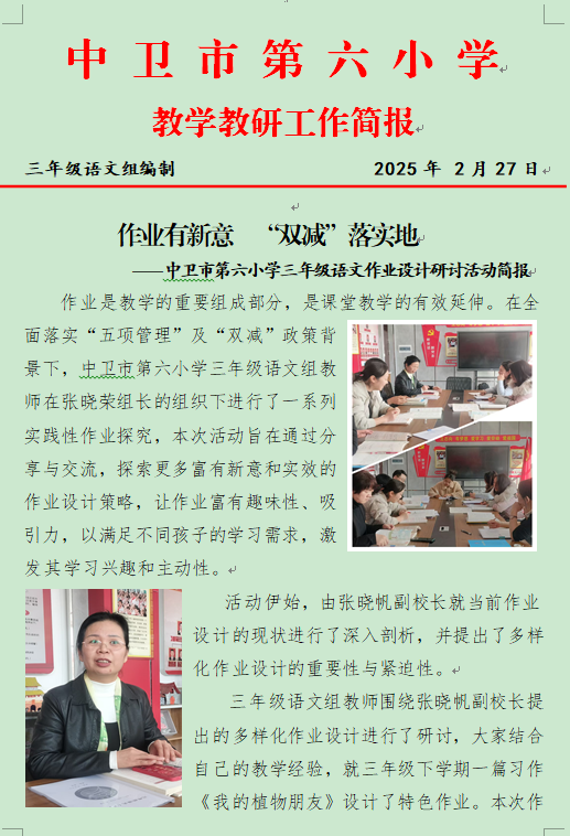 作业有新意“双减”落实地——中卫市第六小学三年级语文作业设计研讨活动简报