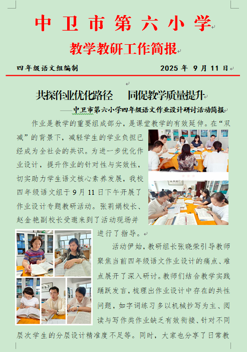 共探作业优化路径同促教学质量提升——中卫市第六小学四年级语文作业设计研讨活动简报