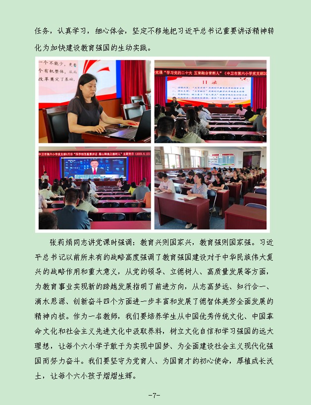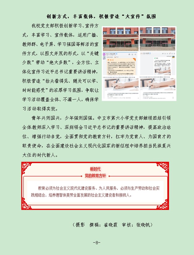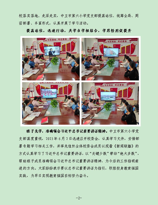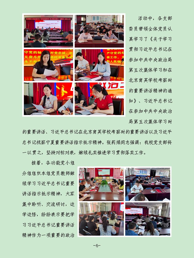 【六小·党建】中卫市第六小学党支部集中学习习近平总书记重要讲话指示批示精神纪实