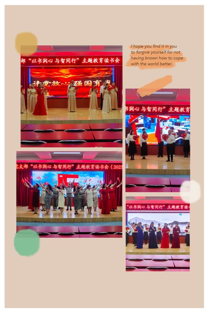 书香润泽心灵,阅读促进成长,一个个精心准备的节目,让全体教职工沉浸其中、心情澎湃。五年级组的《担当》,生动展现了共产党员把人民安危抗在肩头,在灾难面前,在生死抉择之际,用行动、生命彰显出一个个共产党人的无畏担当。三年级组的《学习二十大,永远跟党走》,说出了共产党员的心声:爱党,所以满心感恩;爱校,所以满怀诗情,让我们把爱洒向校园,浸润每一名学生。
