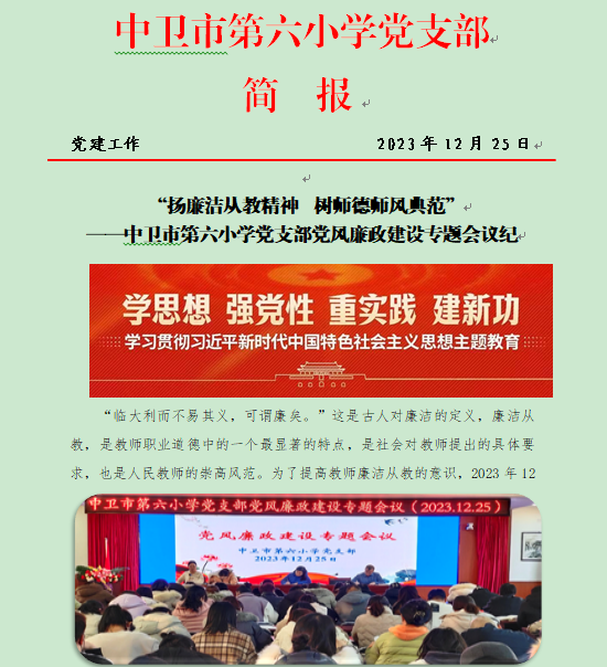 发布时间:2023-12-27 14:09 分类:党建动态 发布单位:中卫市第六小学 点击量:2678 【公开】
