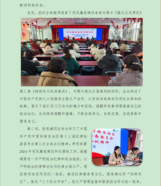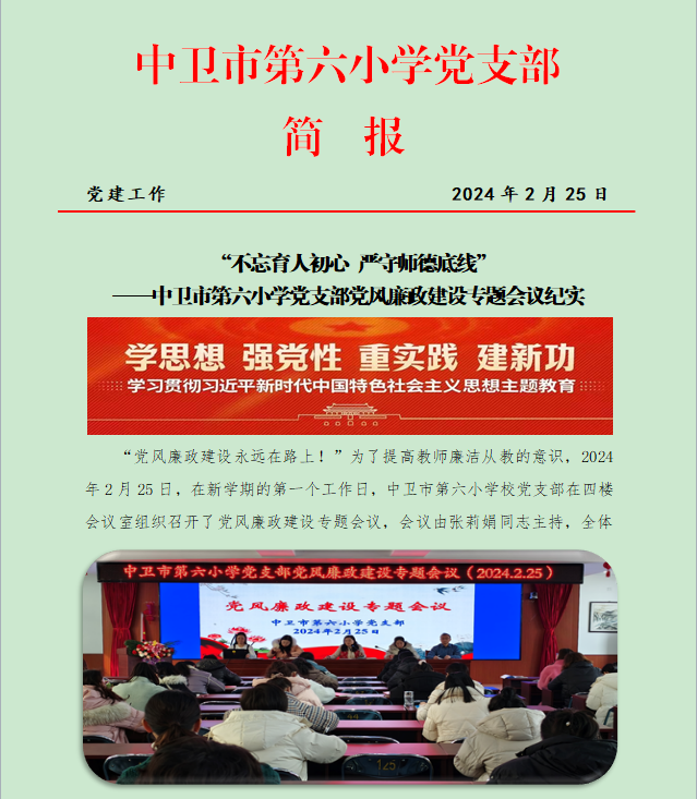 [六小 党建】不忘育人初心 严守师德底线——中卫市第六小学党支部党风廉政建设专题会议纪实
