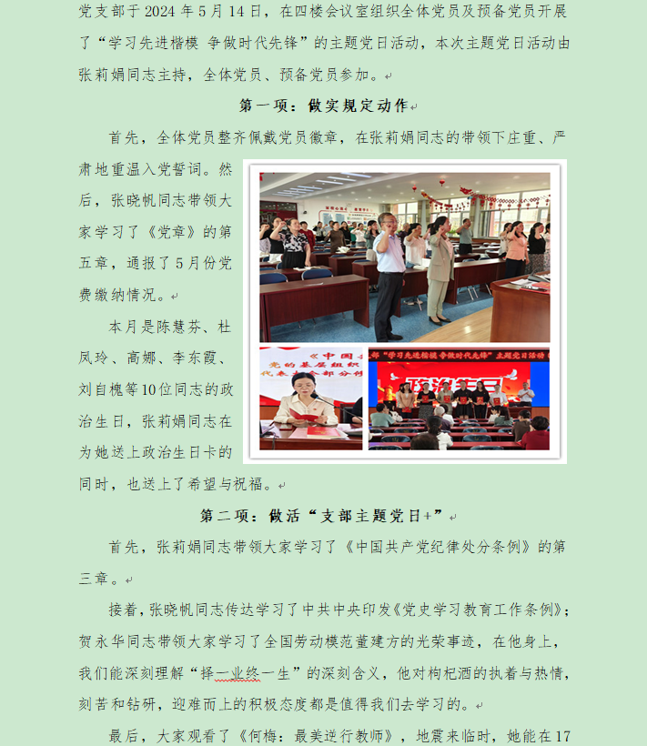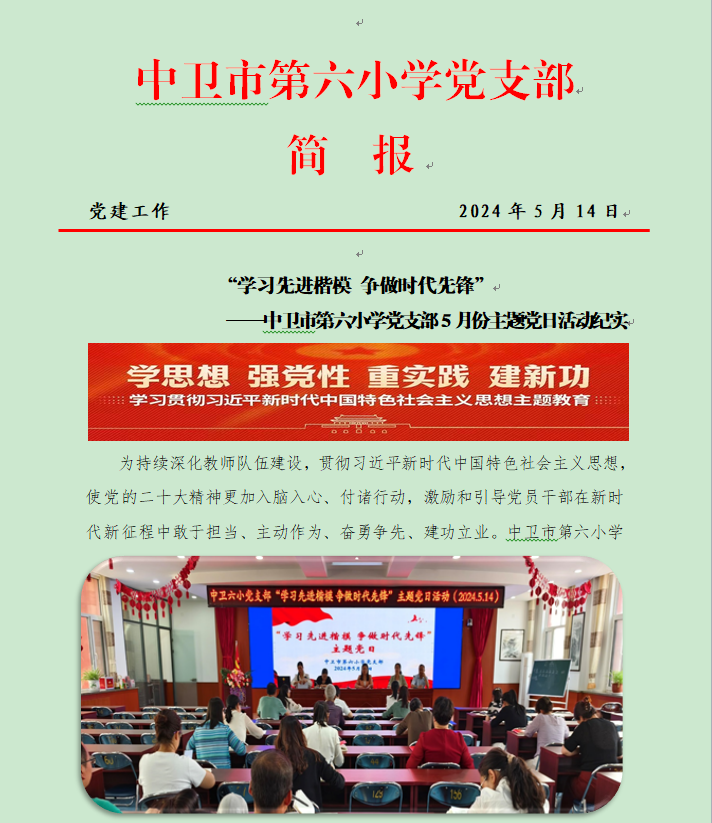 “学习先进楷模 争做时代先锋” ——中卫市第六小学党支部5月份主题党日活动纪实