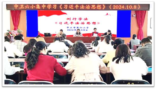 为深入学习贯彻习近平法治思想,全面贯彻落实党的教育方针,进一步深刻领悟习近平法治思想的重要内涵,切实增强依法治校水平,中卫市第六小学党总支于2024年10月8日下午开展了《学习习近平法治思想》专题学习,本次专题学习活动由张晓帆同志主持,全体教职工参加。